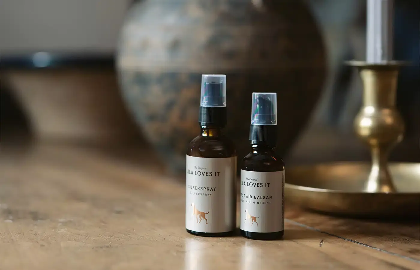 Neben den bereits genannten Inhaltsstoffen Aloe Vera und Mikrosilber befindet sich im SILBERSPRAY von LILA LOVES IT zum Beispiel auch Hyaluron, welches aus der Kosmetik bestens bekannt ist. Es befindet sich in hochwertigsten Hautpflegeprodukten für den Menschen und in einer perfekt angepassten Dosierung eben auch in diesem optimal auf den erforderlichen pH-Bereich für Hunde abgestimmten Spray.