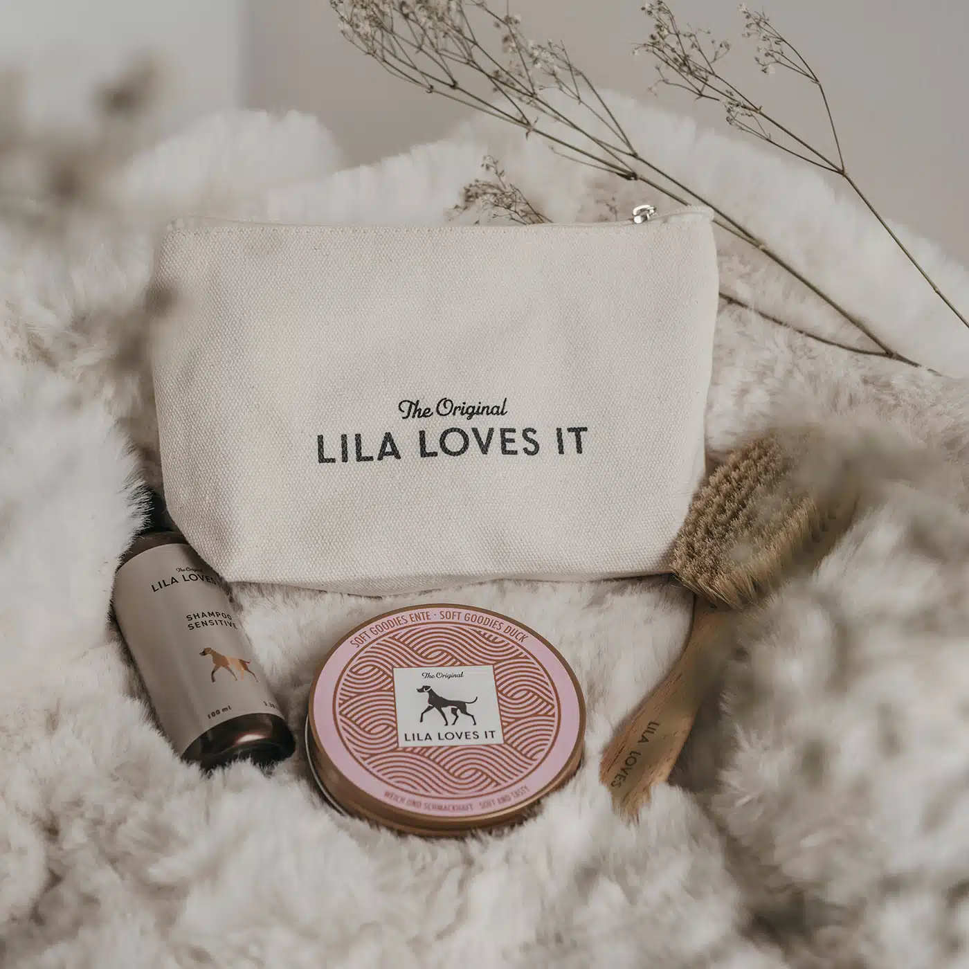 Nachdem der Hund nach dem ganzen Waschen und Bürsten natürlich auch belohnt werden muss, packen wir ihnen noch unsere SOFT-GOODIES AUS ENTENFLEISCH mit in die Bag. Lecker und weich, mit bestem Entenfleisch, sind sie die perfekte Belohnung. Mit der BEAUTY BAG erhalten Sie alles, was Sie für die Pflege Ihres kleinen Lieblings brauchen – sanft, praktisch und mit einem extrasoften Leckerbissen. Ideal auch als Geschenk für Hundeliebhaber!