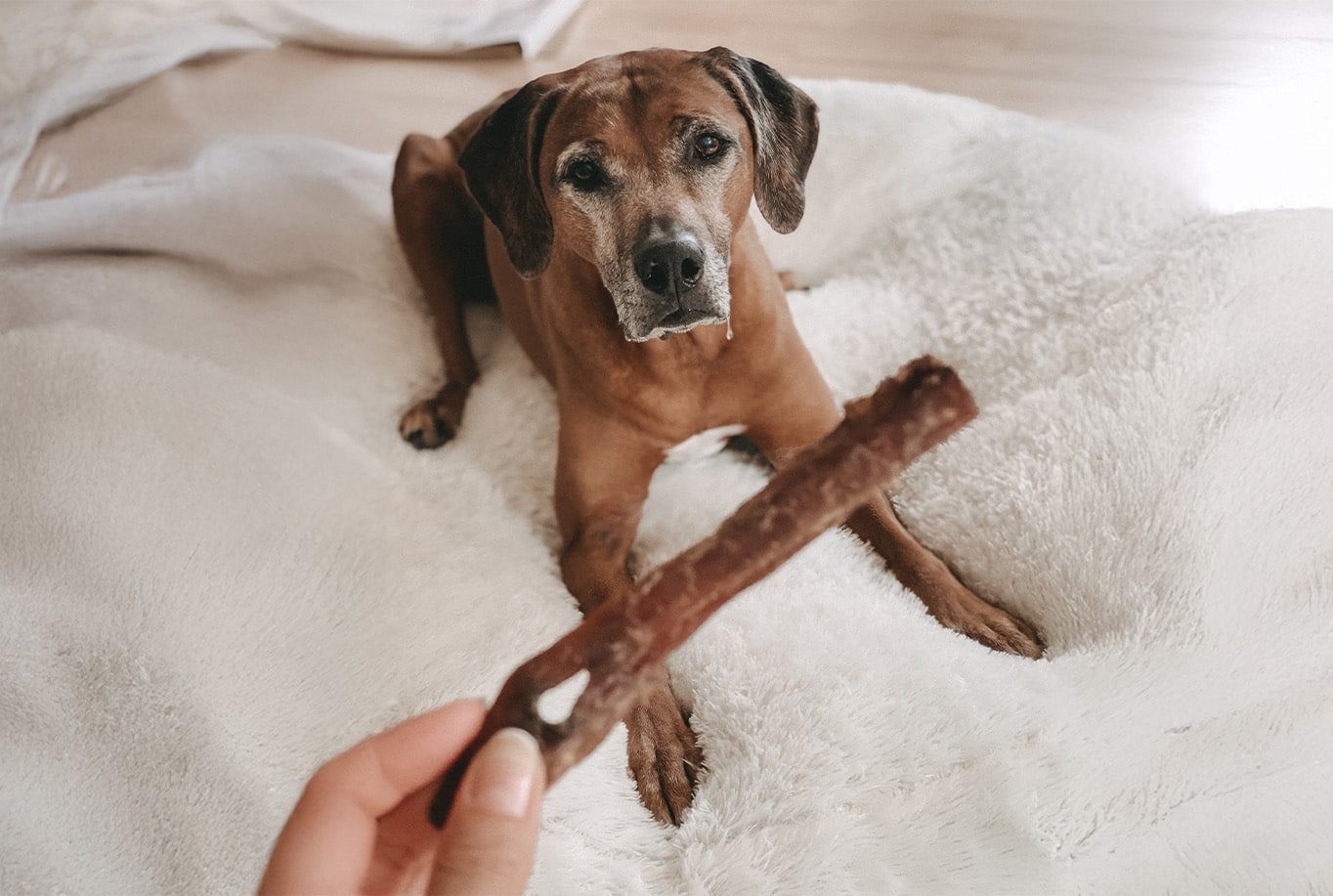 In einen robusten und nachhaltigen Jutebeutel packen wir ihnen drei unserer liebsten (Welpen-)Produkte.