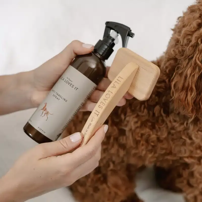After spraying, you can brush the coat well with our SLICKER BRUSH and gently untangle the undercoat with the rounded metal prongs, thus ensuring good “ventilation” of the coat. The brush fits comfortably in the hand and, like all our brushes, is made from sustainable forestry in the Black Forest.