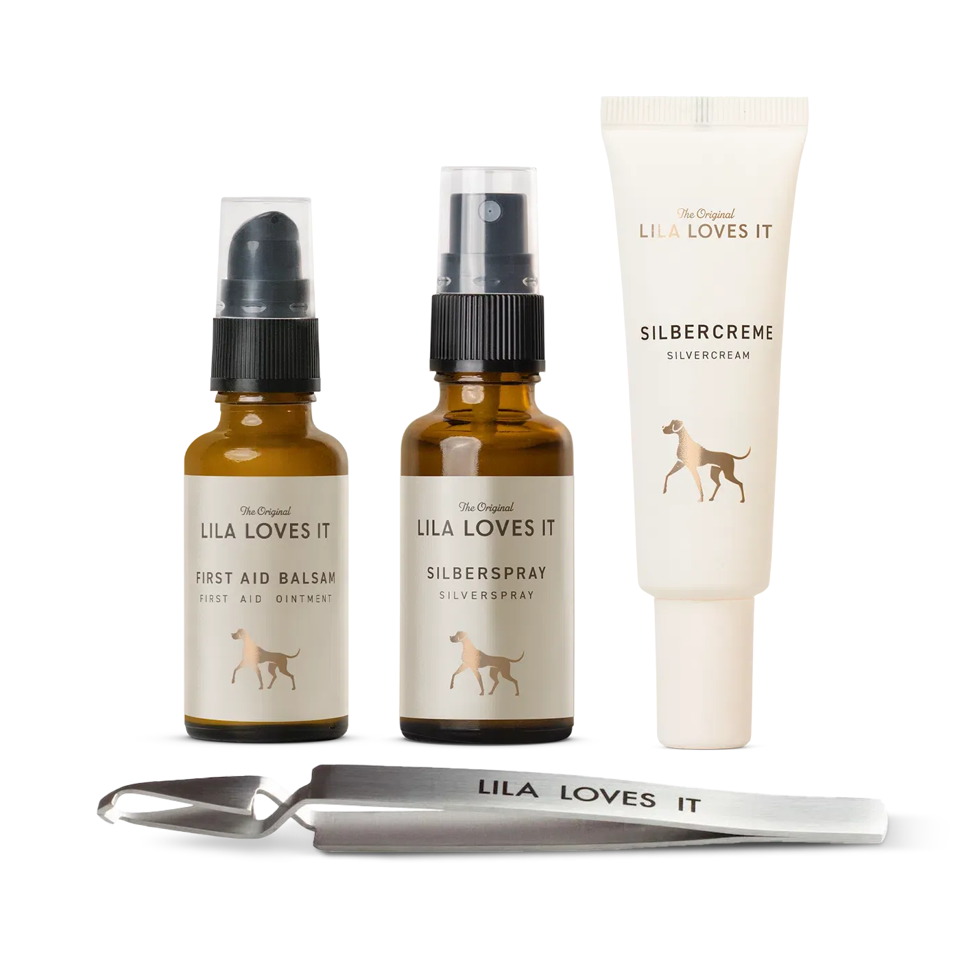 The tried and tested FIRST AID OINTMENT, the wonderful SILVER SPRAY and the innovative SILVER CREAM for the affected areas in the event of minor accidents are combined here with our stainless steel TICK TWEEZERS.