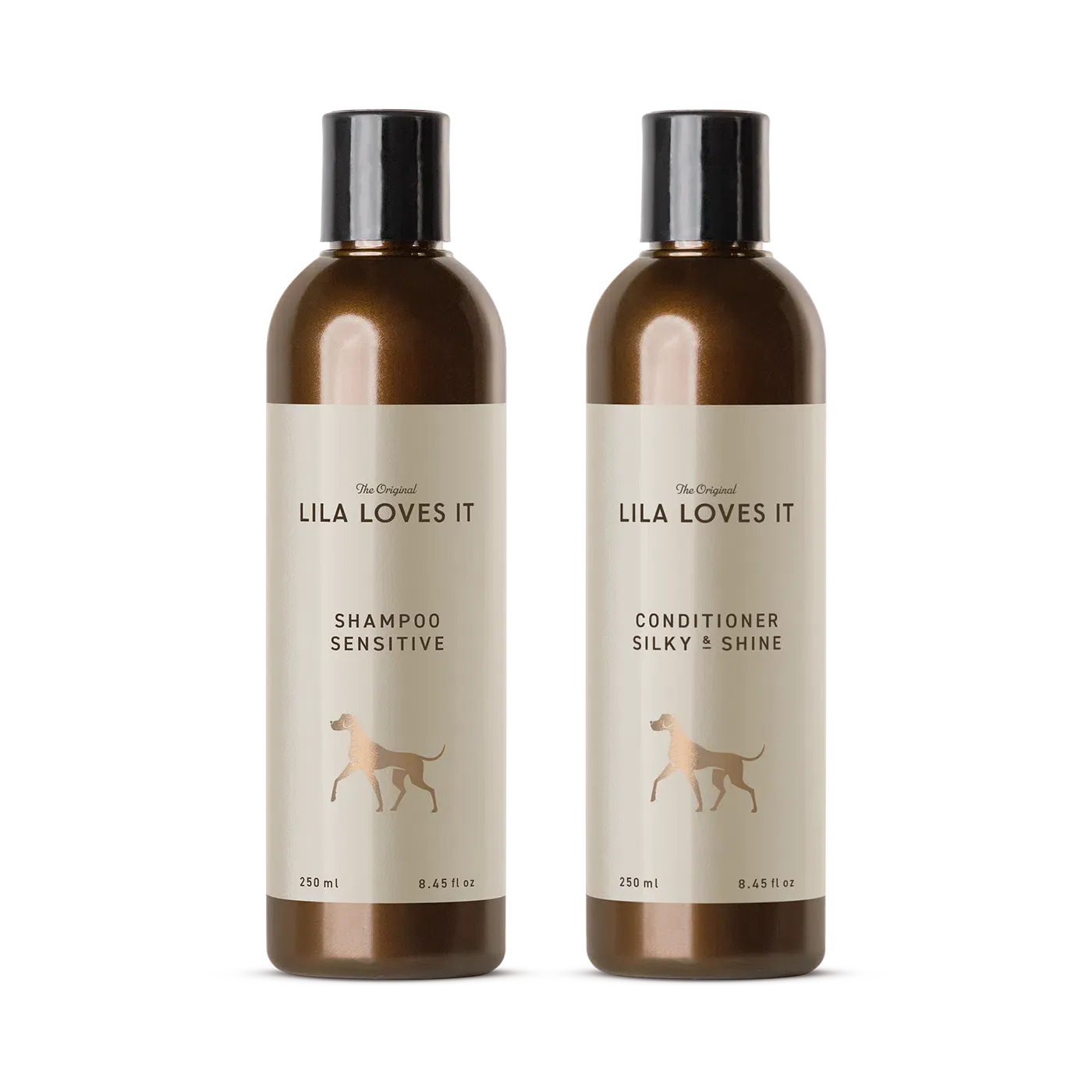 The classic coat care combination from LILA LOVES IT: SHAMPOO SENSITIVE and our conditioner INTENSE SILKY & SHINE.